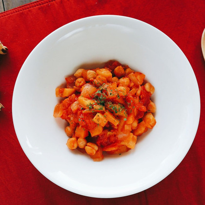 便利な野菜だし使用♪【ひよこ豆のトマト煮】
