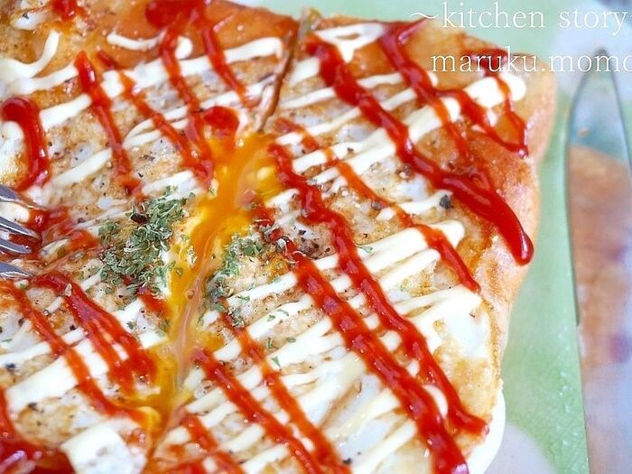 そしてマヨネーズ、ケチャップを全体にかけます。