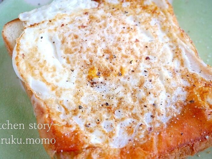 ④少しパンを押し気味にして卵を軽く潰しながら1分~焼く。
