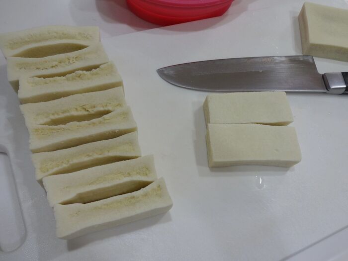 今回は少しは早めの30秒ほど水に浸して、半分にカットします('ω')ノ
