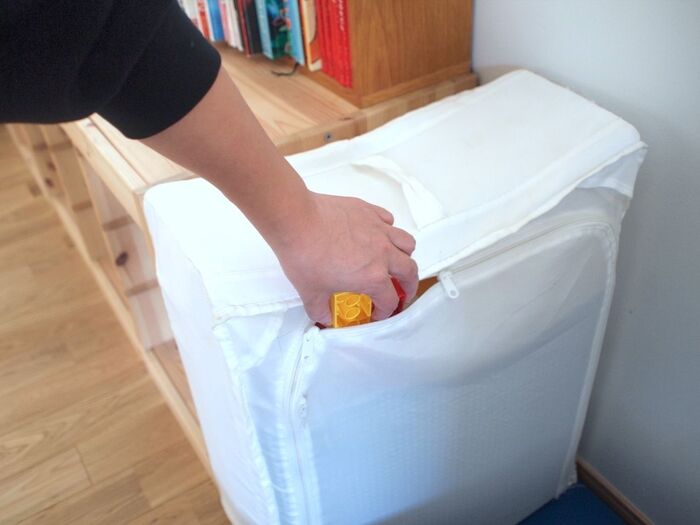 立てて収納したときに上にくる部分のファスナーは少しだけ開けっぱなしに。