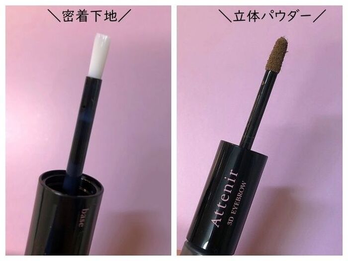 普段ペンシルとパウダーを使っているので下地ってなに??って感じだったのですが、乳白色のリキッドを眉の形に合わせて塗り、その上にパウダーをのせるとムラなくつくそうです。