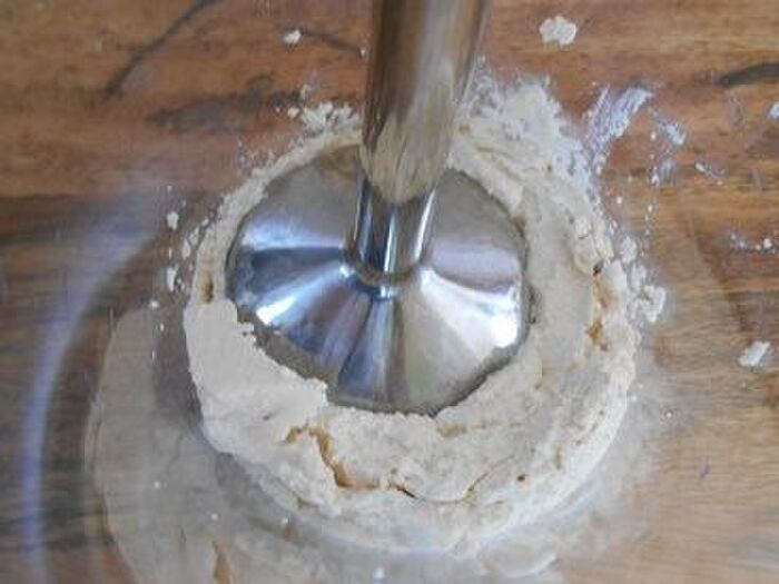 水を切った木綿豆腐をなめらかになるまでフードプロセッサーで攪拌する。