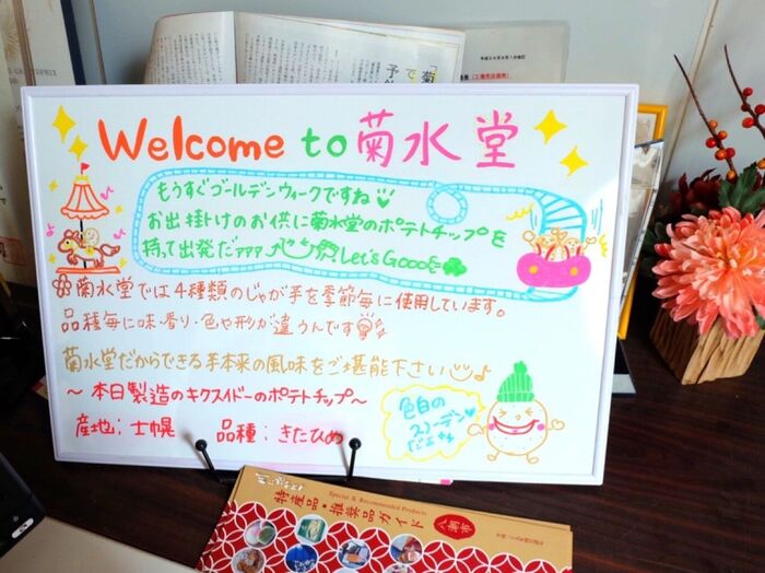 埼玉県八潮市の工場に行くと、今日使っているじゃがいもの品種が紹介されています。