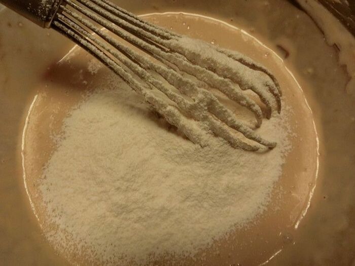 薄力粉を混ぜ合わせるときは、混ぜすぎないようにします。