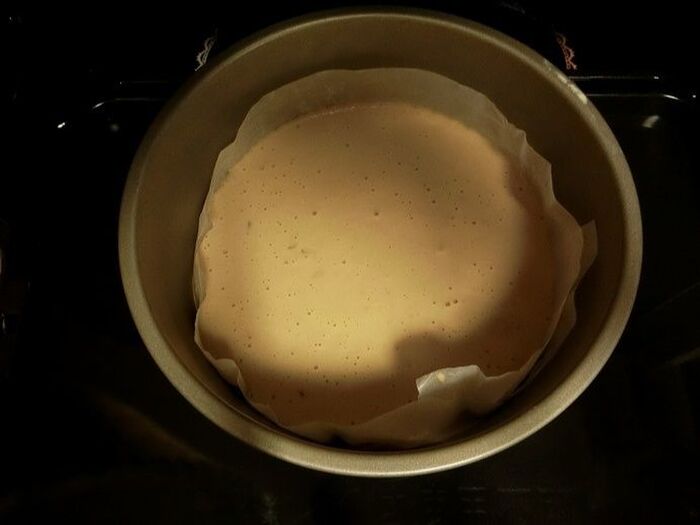天板にお湯を張り、オーブン160℃で50分湯せん焼きします。