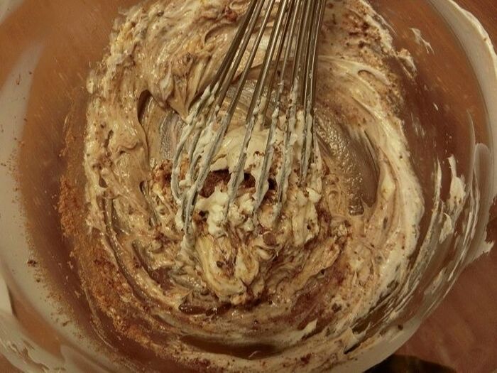 室温で柔らかくしたクリームチーズと黒砂糖を混ぜ合わせます。