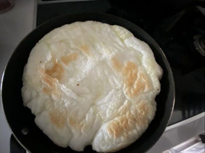 もちがとろけてきたらへらなどで押して形を整え ひっくり返し 両面をこんがり焼く