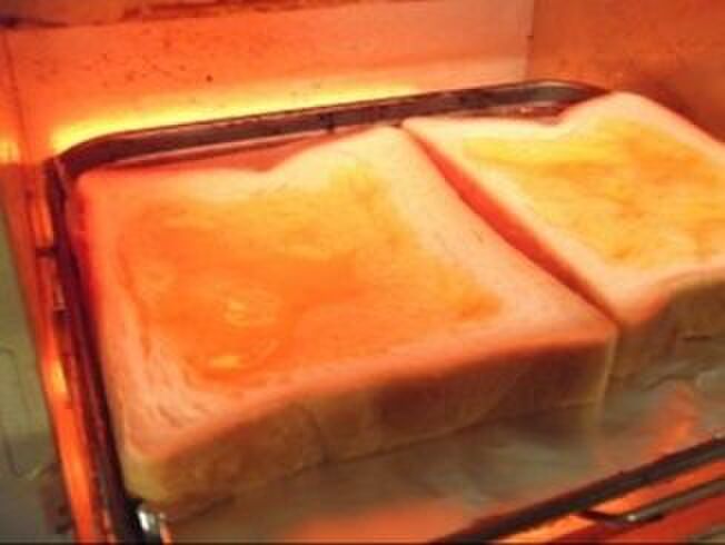 1000wのトースターで、縁がこんがりきつね色になるまで焼いて