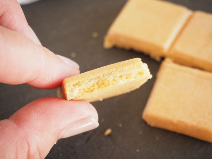 割ってみると、もなかの皮とサブレ生地の二層になっています。