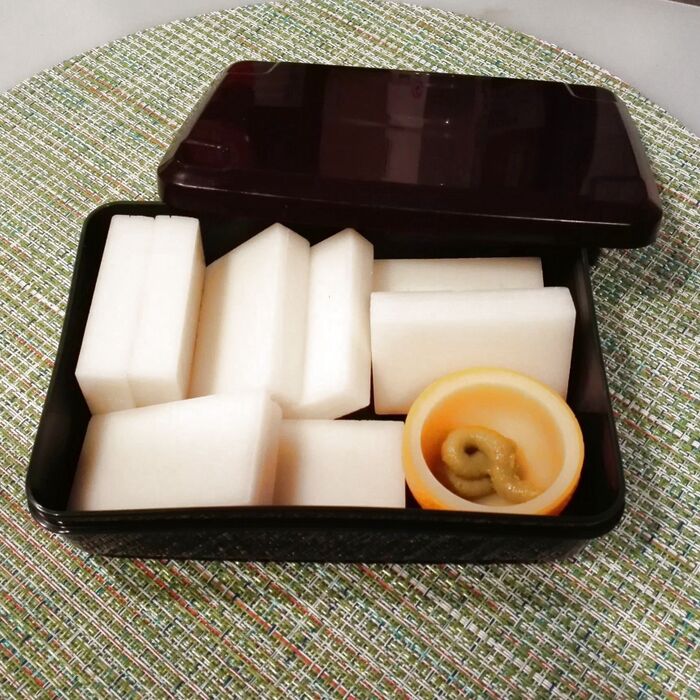 タッパーの中に、お餅と一緒にわさびを入れておくと、数週間カビがつく事なく保存出来ますよ🎵