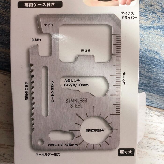 栓抜き、簡易のこぎり、ヒートン回し、なくても何とかなるけど、あるといざと言う時にってモノが1枚になってるから安心。