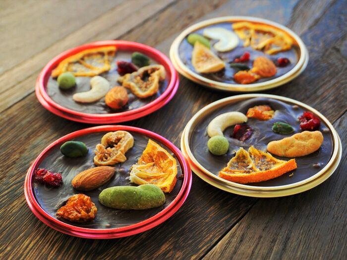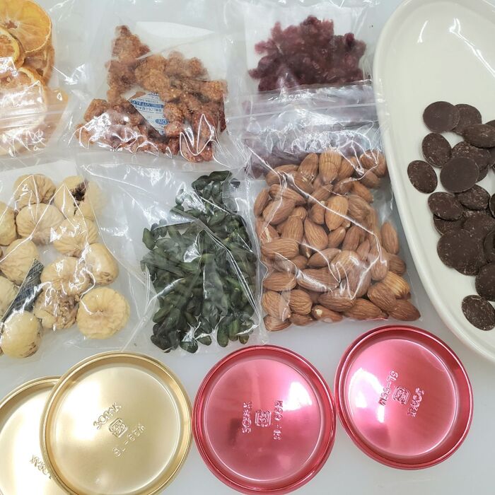 チョコを流したら固まるまでの間に焦らないでトッピングできるように何をどれくらい乗せたいか イメージしておきましょう。