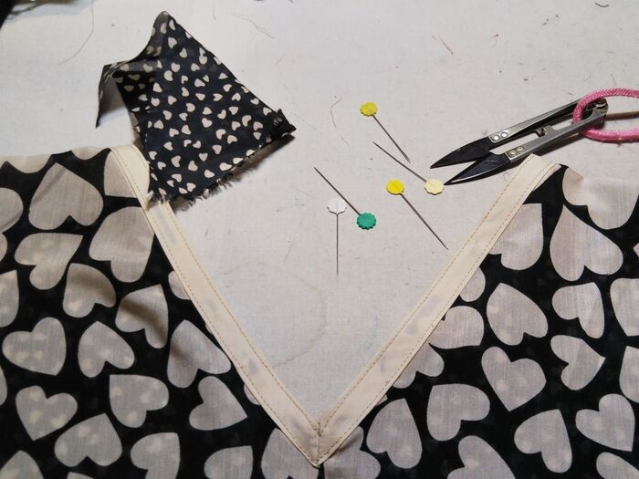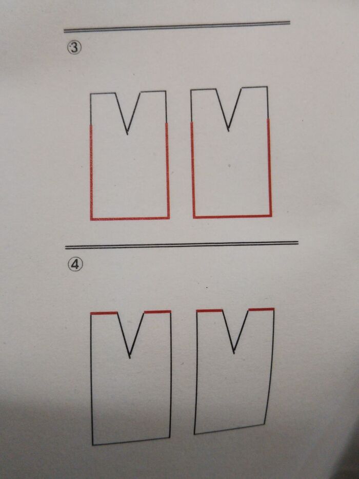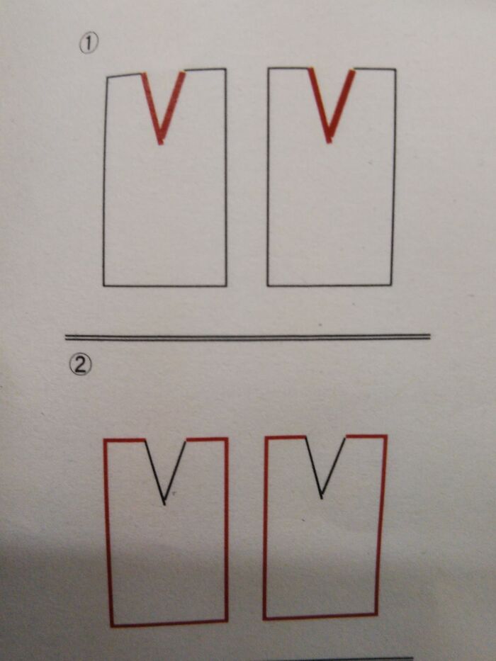 2枚の布を中表にしてから図③の赤線部分を縫う→