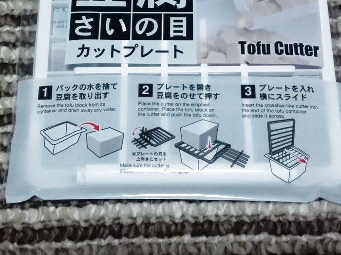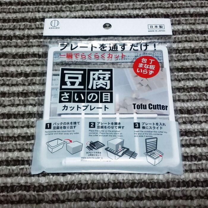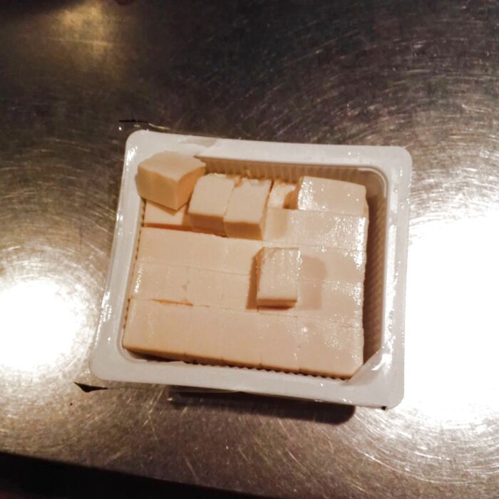 大きいパックのお豆腐はこのまま使用できますが、小さいパックの場合はまな板の上での作業になるので🌟ー1