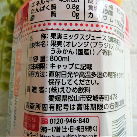 原材料名:果実(オレンジ(ブラジル)、うんしゅうみかん(国産))/香料