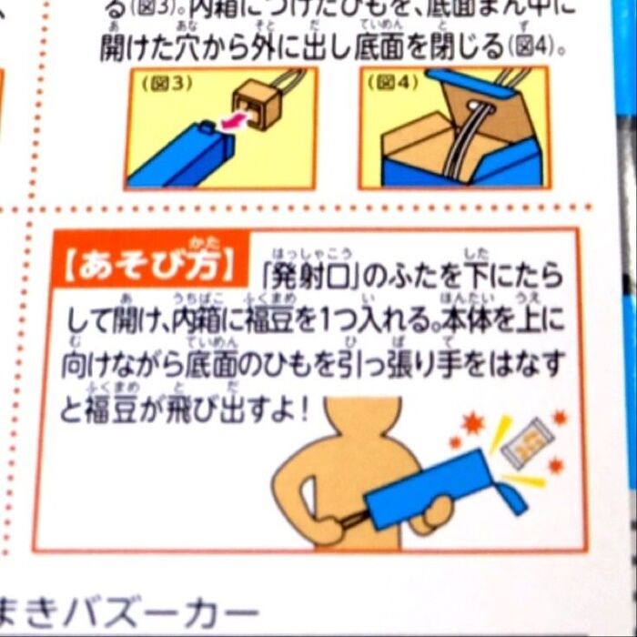 なんと、ヒモを引っ張ると袋ごと豆が放たれます!!