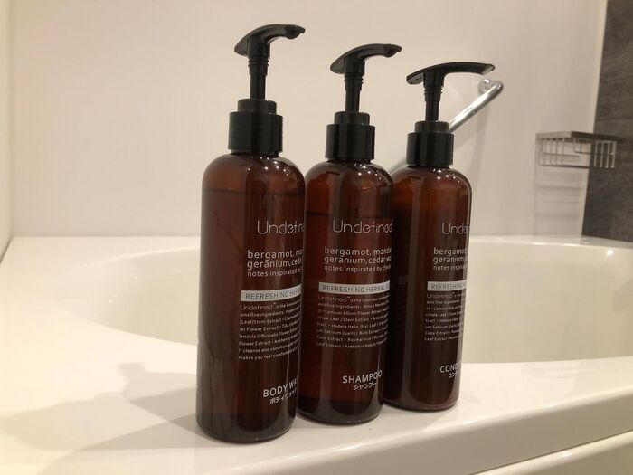 ホテルだと、リンスインシャンプーなどが多いイメージですが、シャンプー、コンディショナー、ボディーソープがそれぞれ準備されています。