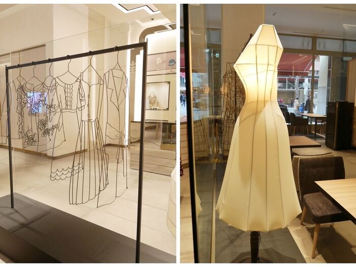 まるで洋服が掛かっているようなアイアンのディスプレイやドレス型のライト