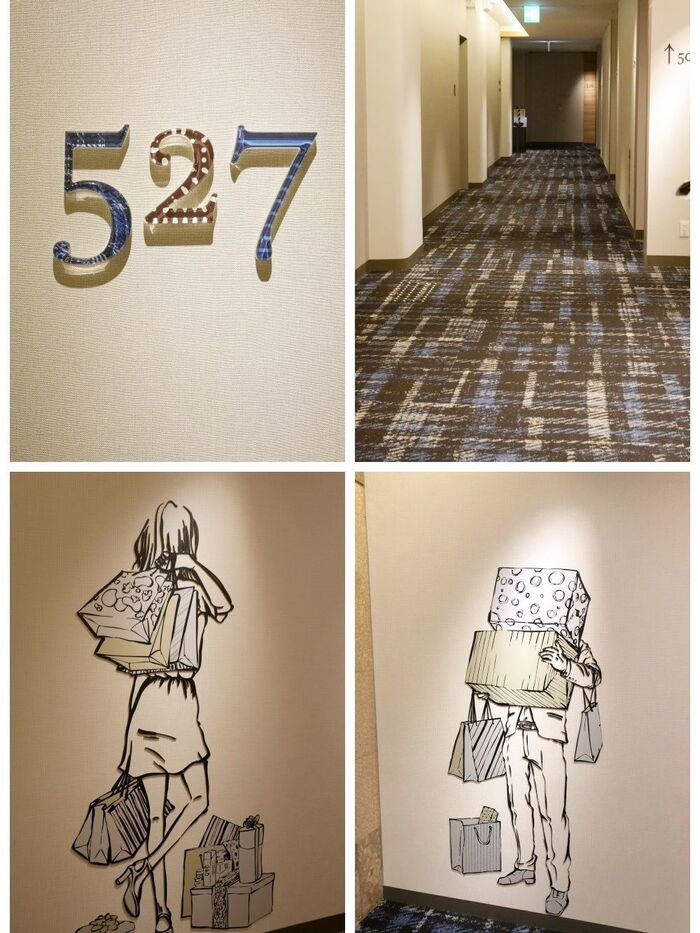 さらに、フロントから客室までの廊下や壁にもデパートをイメージしたディスプレイが。