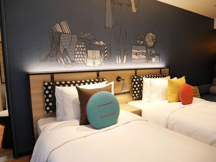 壁面はショッピングをイメージする絵が描かれていたり、部屋の中にも「デパートメントホテル」のこだわりを感じます。