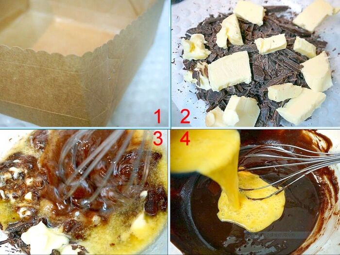 ②ボールに刻んだチョコ、バターを入れラップをふわりとかけ、