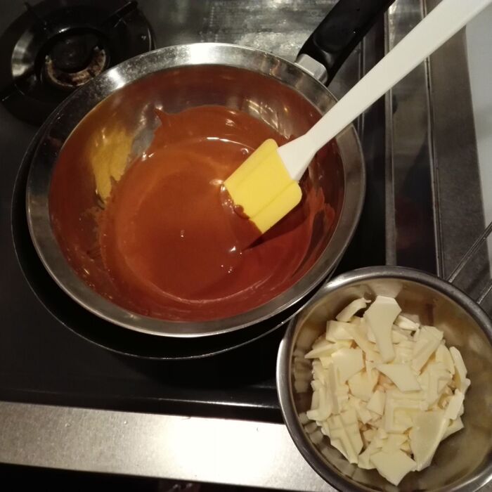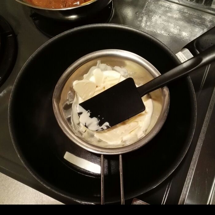 レンジでも出来ますが、私は湯煎で溶かしました。