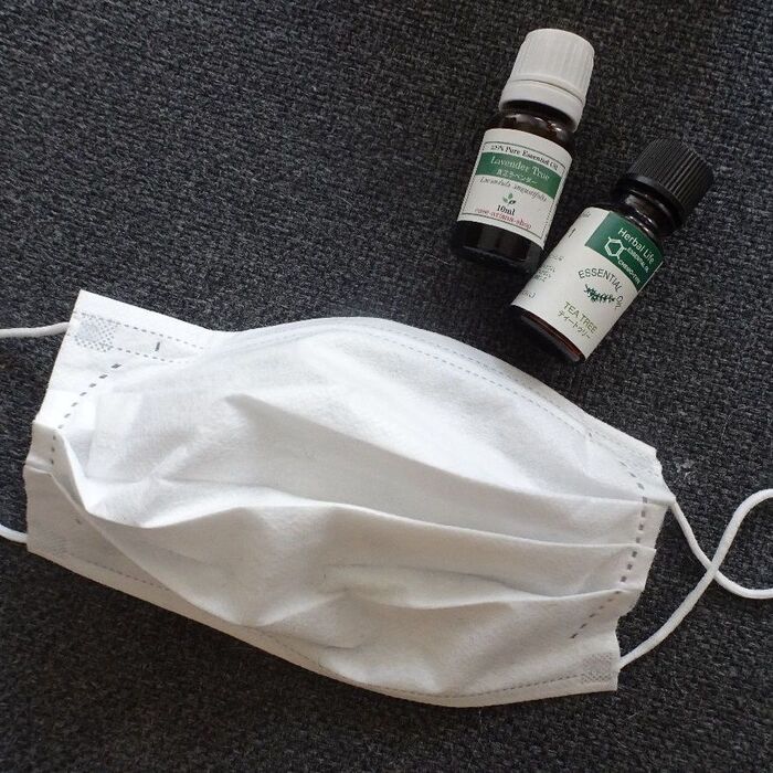 なので、端っこにアロマを数滴垂らして使っています。冬場は抗ウィルスや殺菌力を期待して、ティートゥリーを愛用。