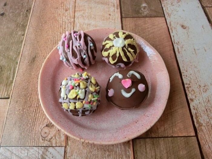 固まったらチョコペンやアラザンなどでデコレーションします。