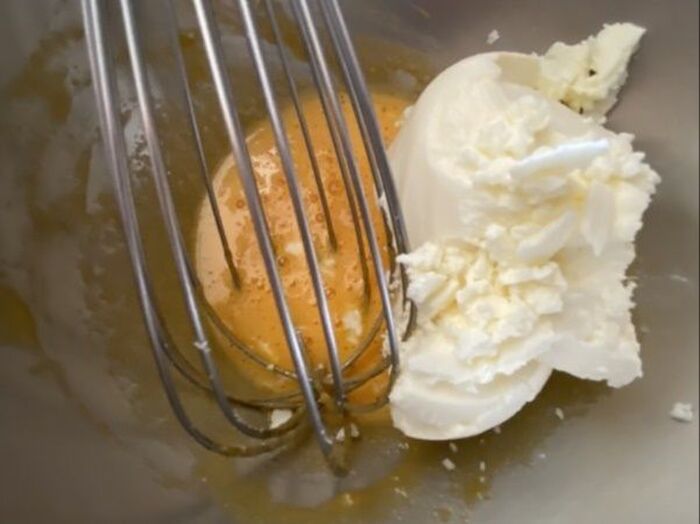 室温に戻しておいたマスカルポーネを加え よくかき混ぜる