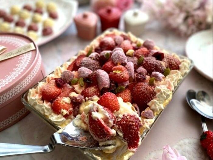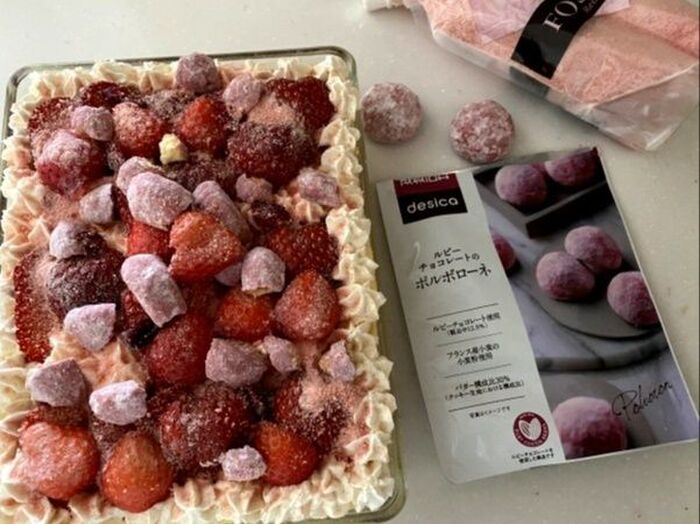 器の底に敷き詰め 3個のいちごを小さく切ってのせる