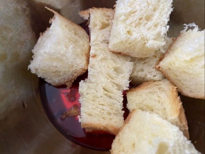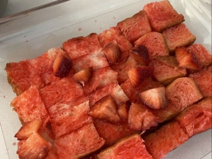 ストロベリーシロップにマルサラ酒を加え デニッシュパンの厚みを