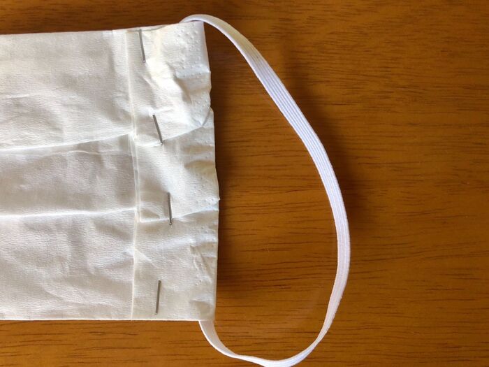 (最初は長めにとっておいて後でぴったりに合わせるといいですね。市販のマスクのゴムの長さを参考にしても♪)
