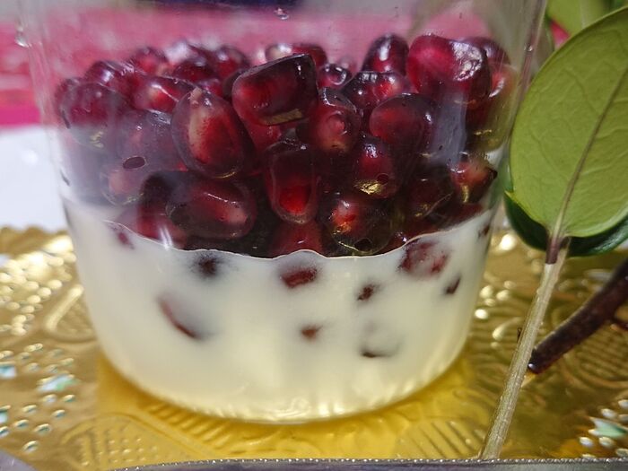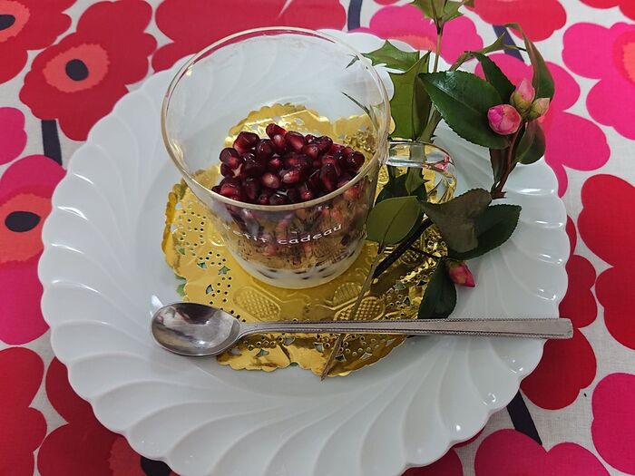 朝食ヨーグルト‼️ ザクロの方が多い(笑)