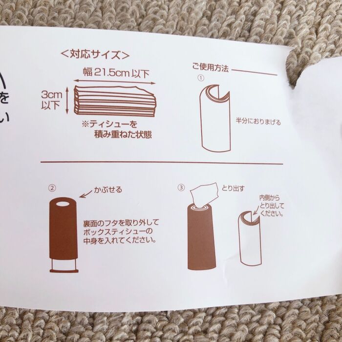 厚み3センチまでなので箱ティッシュ1個まるごとは入らなさそうです。