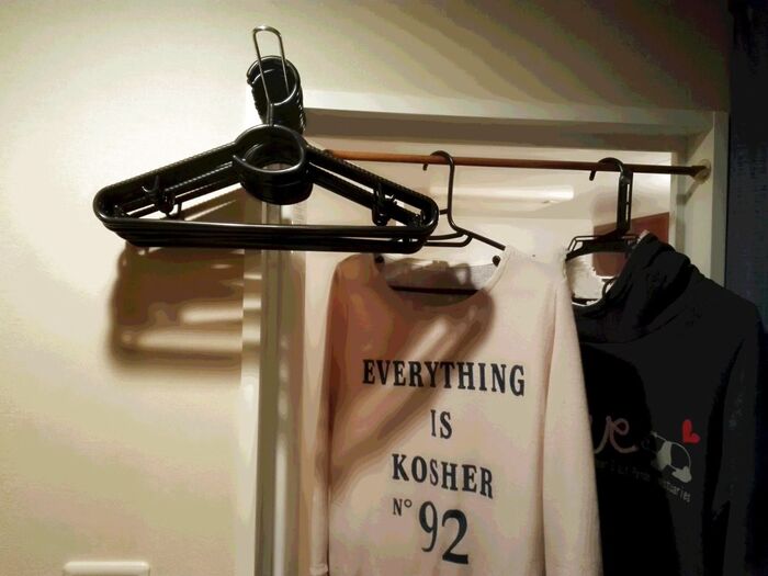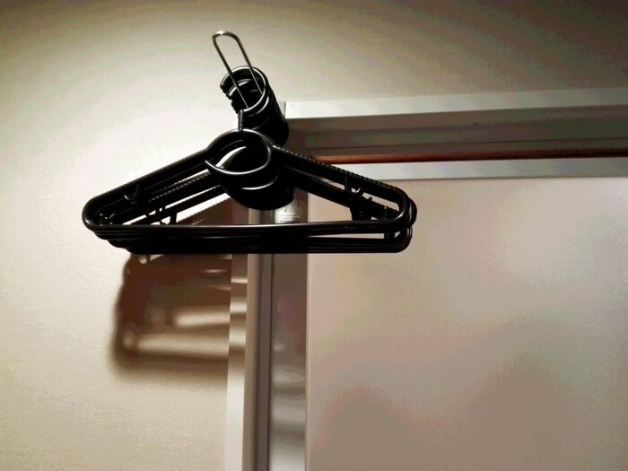 浴室の右側に洗濯機があるので、出したらハンガーに掛けて、一端突っ張り棒に掛け、パンパンしてから浴室やベランダに干しています❗