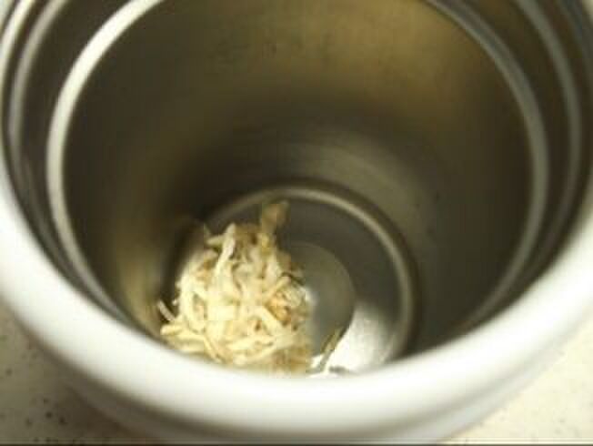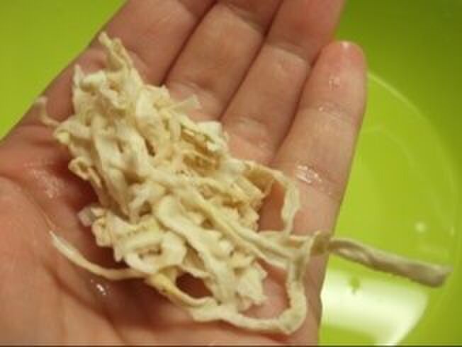 切干大根はたっぷりの水でザブザブ洗って汚れを落とし、ギュッと絞ってスープジャーへ。