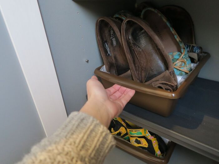 引き出し部分がついているのも使いやすいポイントです!一番奥を取りたいときも、ちょっと視線をそらせば全部の靴が見渡すことができ、持っている靴の把握にも向いていると思います。