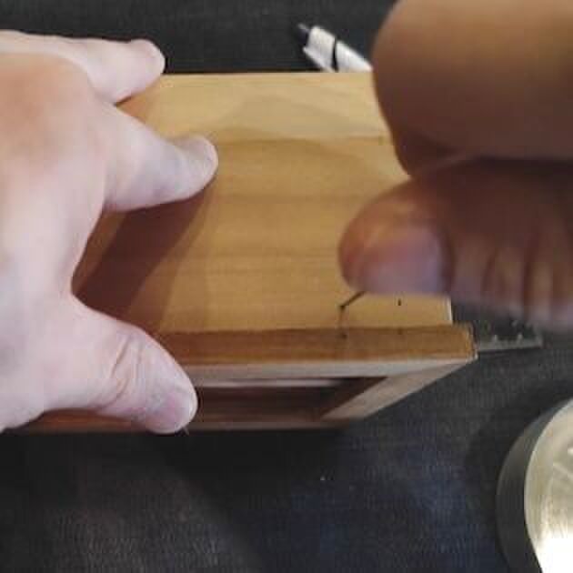 キリで下穴を軽く作り(1枚4箇所の計8ヵ所)