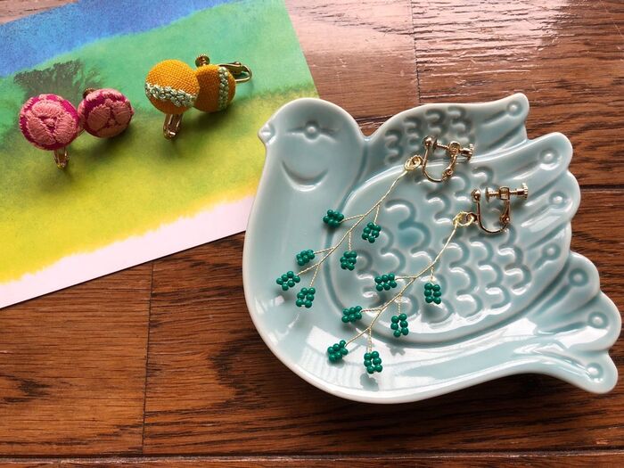 ミナペルホネンの贅沢な刺繍を楽しめるイヤリングが、あっという間に完成です!