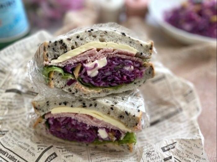 紫キャベツは大きめのせん切りに切り塩をふって軽くもんで
