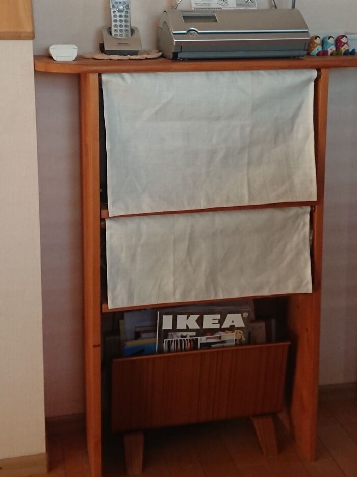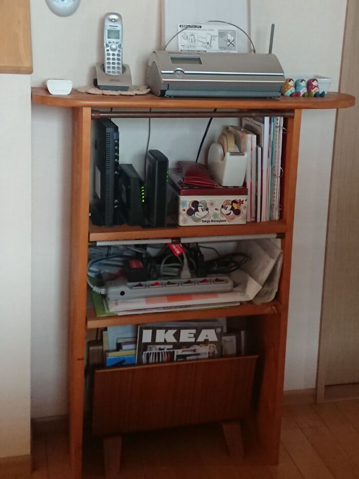 目隠し布の向こうは、こんな感じで セロテープ台やルーター