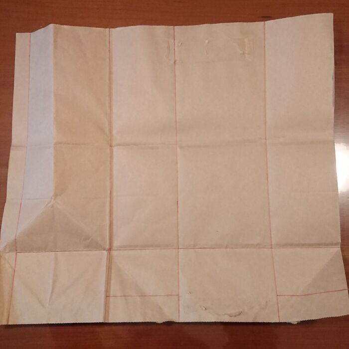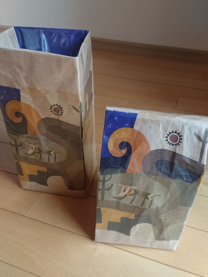 こうすると、扱いやすくなり、もともとの紙袋の折り目も