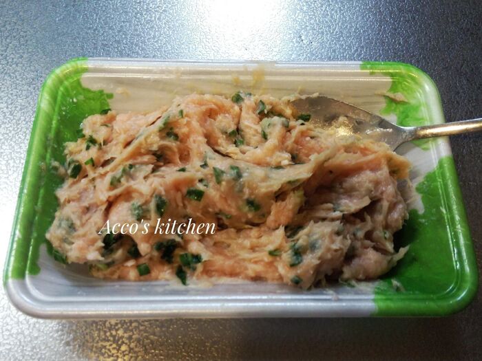 一口大にまとめ、沸騰した鍋に入れていきます。