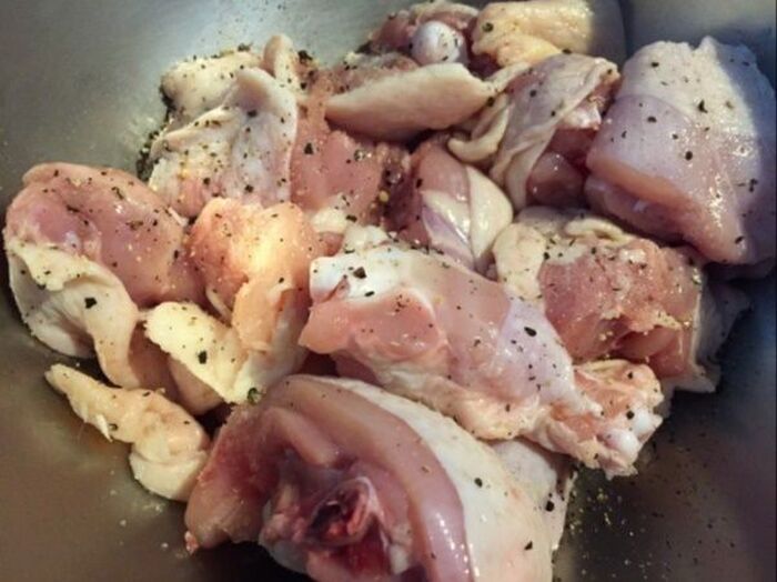 鶏肉に 塩・コショウ にんにくパウダーをふる