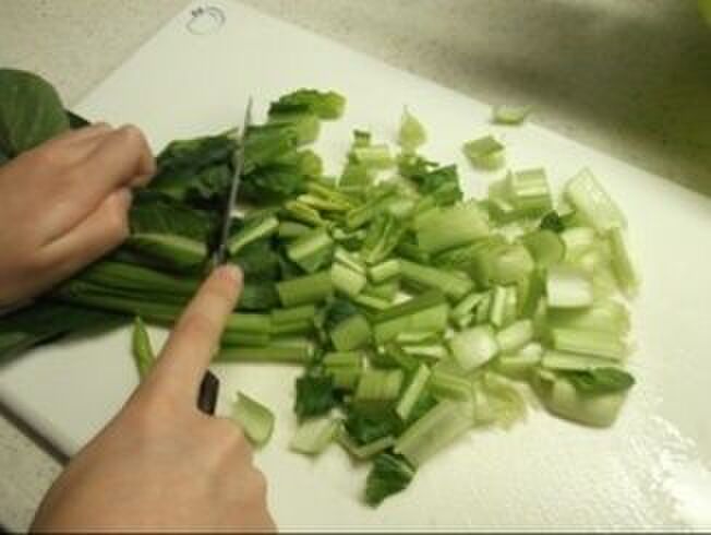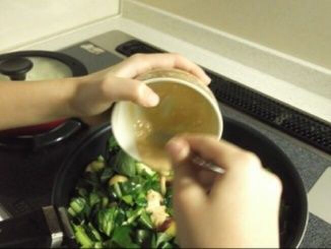小松菜はシャキシャキ食感を残したいので、さっと炒めてね~