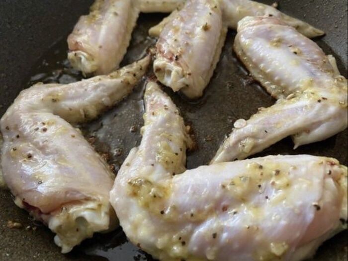 焼いた手羽先の汁を全体にかける