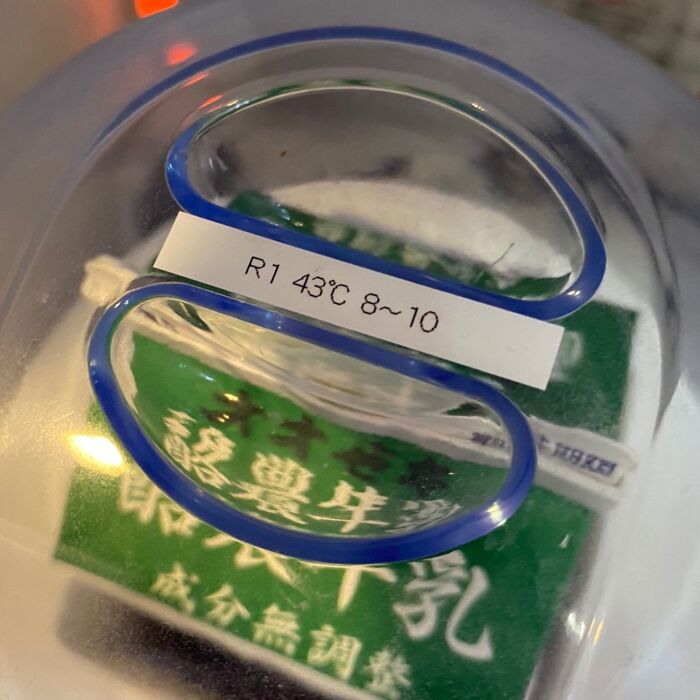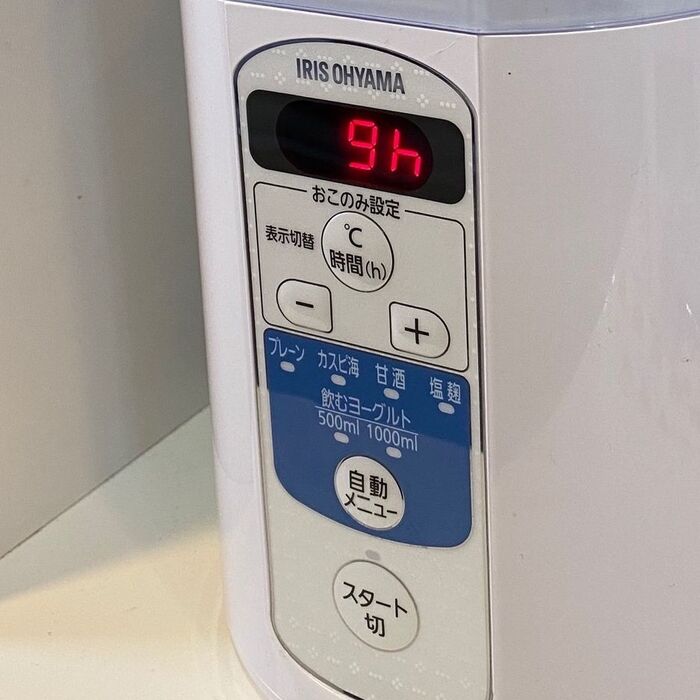 私はいつも培養するヨーグルトの温度と時間を覚えておく事が出来ない人なので、テプラで貼っております。(笑)