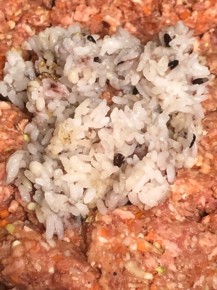 玄米と雑穀ご飯以外の材料を混ぜ合わせる。