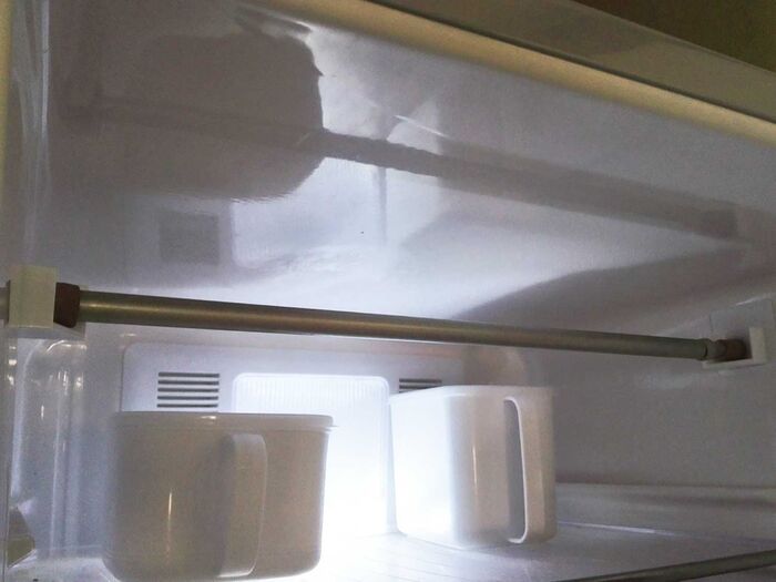 冷蔵庫内の両壁面に貼り付けて、つっぱり棒をのせて突っ張れば、吊下げ収納が可能なバーが簡単に設置できます。